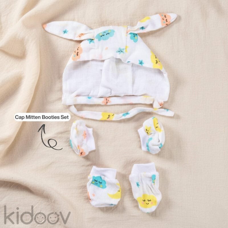 Cap Mitten Booties Set – cozy accessories to keep baby warm.