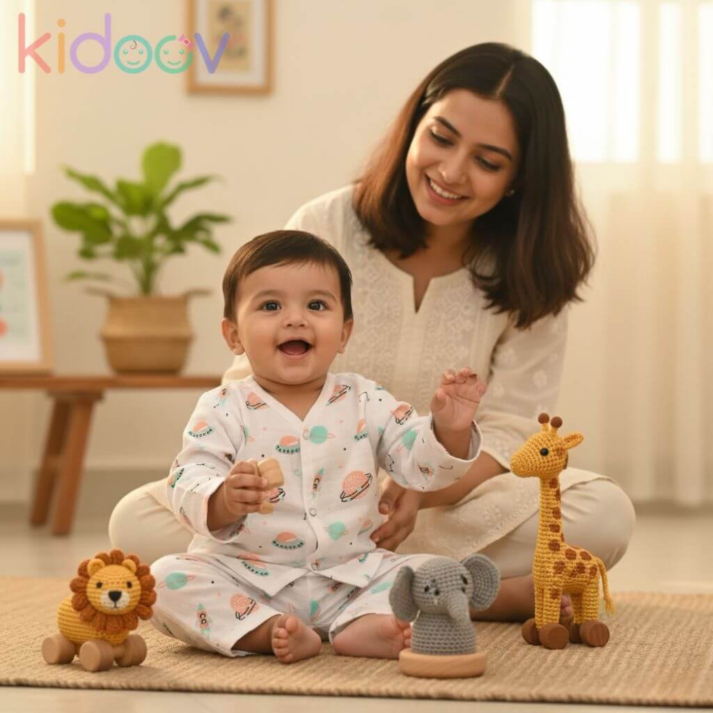 kidoov night suit full sleeve 1.jpgMuslin Night Suit Full Sleeve | Organic Cotton Baby Sleepwear